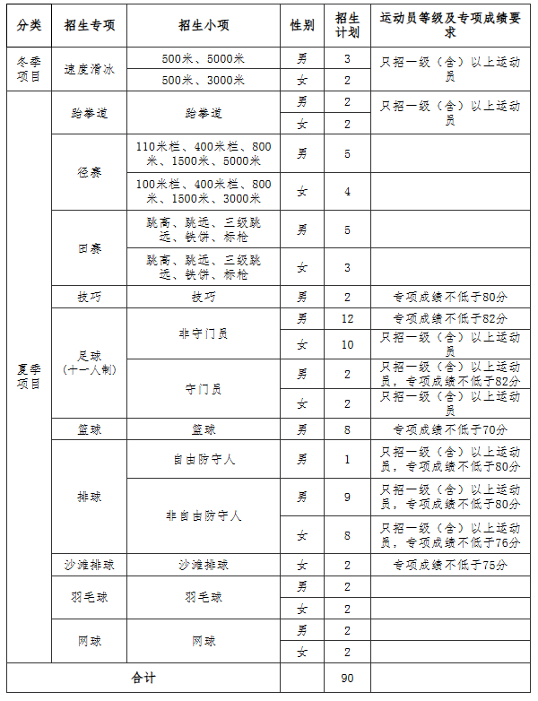 面向全国招生,拟计划招生90人,分项目分性别招生计划如下: